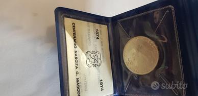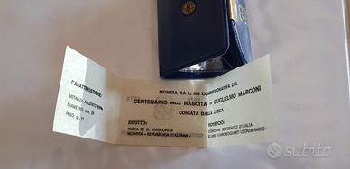 500 lire d'argento del 1974 certificata fior di conio. Centenario della nascita di Guglielmo Marconi 1874/1974.