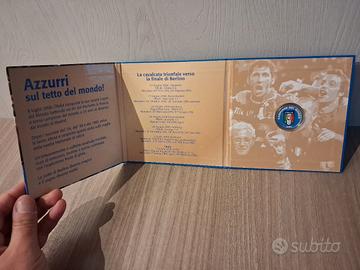 Moneta in argento da 11 grammi Titolo 835 Inserita in folder. Dedicata alla vittoria dei mondiali dell' Italia campione del mondo 2006. Lieve ossidazione nella parte in argento (fisiologico per il materiale) impeccabile nel lato "colorato" Visibile e ritirabile a Milano