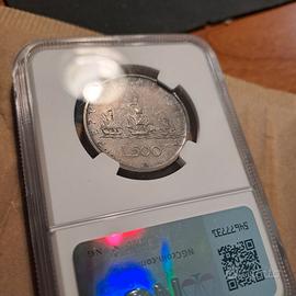 rara moneta di 500 lire R5 SIGILLATA fdc evidente patina di ossidazione non pulita come di solito si procede. e' una moneta per collezionisti seri no commercianti. la moneta dato il suo valore si può visionare in loco (sono disabile). vendo causa età. c'è poco da scrivere solo possederla un pezzo di storia italiana che ha creato un errore di conio.