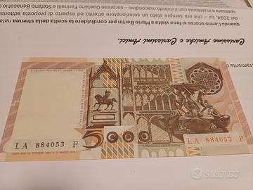 Banconota da 5000 lire Ciampi- Stevani Fior di stampa dimensioni 127x61 mm.