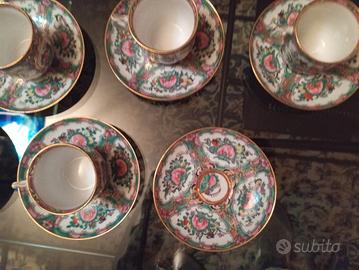 6 (+ 6 su richiesta) Tazzine Rose Medallion Porcellana Cinese.