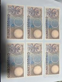 6 Banconote 500 Lire MercurioFDS Serie Consecutiv