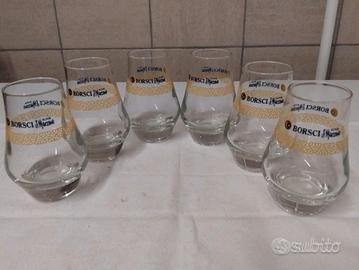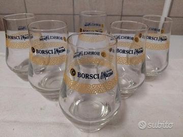 6 bicchieri Amaro Borsci Elisir San Marzano , storico marchio Pugliese della provincia di Taranto. 6 pezzi in perfette condizioni.