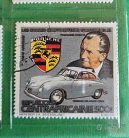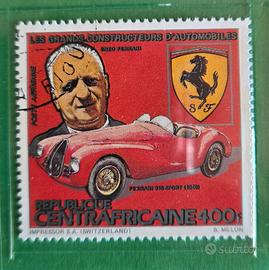 6 francobolli Republique Centrafricaine con timbro postale. Patented Bolaffi: •Panhard et Levassor 10F •Porsche 500F •Bugatti 80F •Ferrari 400F •Renault 30F •Ford 20F Questi francobolli sono oggetti da collezione provenienti dalla Repubblica Centrafricana. emessi nel 1983 e dedicati ai "Grandi Costruttori d'Automobili", conservati in una taschina protettiva. Spedizione con Posta4 piccolo standard.