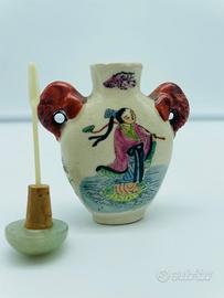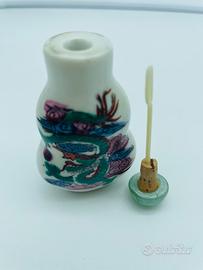 Collezione 6 porta essenze / boccette da tabacco o profumo orientali in porcellana/ceramica smaltata decorate con motivi floreali e figurativi di gusto cinese