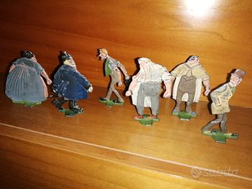 Figure civili molto buffe realizzate con stampi originali creati da Georg Spenkuc Norimberga che inizio a produrre figure semi-scultoree che ritroviamo in questo gruppo costituito da 6 personaggi piatti di altezza 4.5 cm dipinti sui due lati di fabbricazione tedesca euro 155 NO PERDITEMPO preferibile ritiro a mano Napoli Vomero