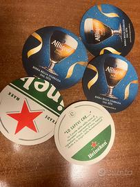 6 sottobicchieri di cartone per birra, ottimi come sottobicchieri per birra ma anche ideali per appoggiare bottiglie di olio o vino sul tavolo senza macchiare la tovaglia. Marche assortite come da foto, 4 pezzi marca Affligem Noël Cuvée birra Belga in ottime condizioni! 2 pezzi marca Heineken, 1 in perfette condizioni e uno dietro un po' rovinato (vedi ultima foto) il prezzo tiene conto anche di questo.