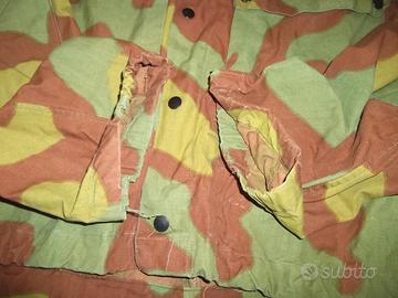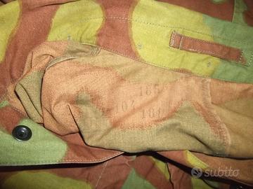 NON ACCETTO TRANSAZIONI TRAMITE SUBITO. Se interessati, contattatemi. Giacchino mimetico Esercito Italiano anni 60/70. Tg grande (56), ma risulta accorciato, come da foto. Usato, ottime condizioni. Solo gli elastici ai polsini, risultano aver perso elasticità. Misure : spalle cm 56, ascell 67, lunghezza 63, manica 63. Spedizione € 10.80 Poste Delivery Standard