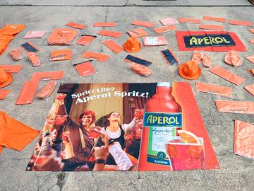 lotto composto da 65 gadget pubblicitari misti del noto aperitivo aperol spritz fratelli barbieri padova si può trovare un po' di tutto da uno striscione abbastanza grande a una bandiera più piccola infradito di varie misure 3 cappelli parasole - uno zaino per gite escursioni altre sacca zaino a spalla in due grafiche differenti - materassini gonfiabili - e tutto il restante presente e visibili sulle immagini fotografiche riportate sull'annuncio parte integrante della descrizione di ogni singolo articolo per un totale complessivo di 65 pezzi