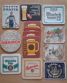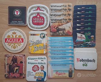 Collezione di 65 sottobicchieri di birra vintage in cartone. Il lotto è composto da 34 soggetti differenti, inclusi diversi doppioni per collezionisti. Un mix perfetto di marchi storici europei e grafiche pubblicitarie d'epoca. Marchi inclusi: Jupoler, Stella Artois, Peroni vintage, Aguila, Spaten Munchen, Guinness, Diekirch, Rodenvach, Tuborg e la bellissima serie illustrata "Belle-vue"