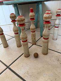 7 birilli con pallina. Gioco dei anni 40.. francese La torre misura:32 cm Gli altri 6 : 30 cm