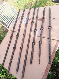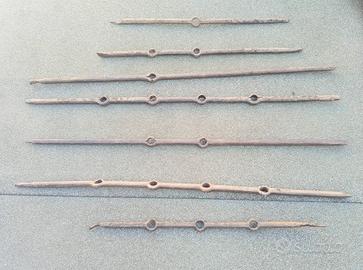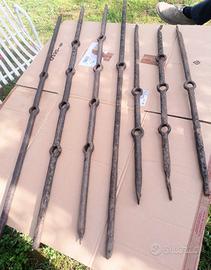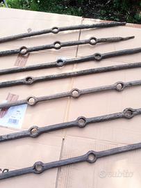 nr. 7 ferri battuti a mano ex battenti orizzontali di vecchia inferriata di cascina lombarda