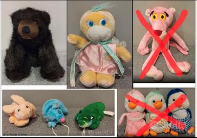 Vendo i 7 pupazzi in foto in blocco a 12€: Tottles Taffy, 3 son così Perlana, nosy Bears (sacchetto pop corn staccato ma ancora presente nel naso), Bambi, orso Ozark. Camillo Mirabilandia è stato venduto e anche i 3 pinguini, i 3 sette nani e la pantera rosa. Ritiro a mano in Torino nord o spedizione con tuttosubito