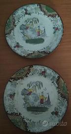 2 PIATTI PIANI VINTAGE CERAMICA CON DISEGNO A MANO GIAPPONESI ('900)