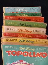 Topolino, 8 numeri dal 1970 al 1973, vendo ad Euro 15 + Euro 5 di spedizione tracciabile con raccomandata piego di libri oppure a richiesta Euro 1,50 di spedizione non tracciabile con piego di libri normale. I volumi sono: