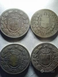 1 MONETE UMBERTO 2 LIRE 1882, AR.835/1000 PESO MONETA 10 GRAMMI ARGENTO PURO 8,35