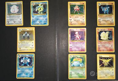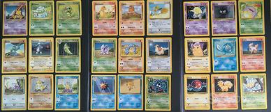 Lotto 83 carte Pokemon Set Base, così composto: - 10 holo - 9 rare - 26 non comuni - 38 comuni Condizioni miste, come da foto.