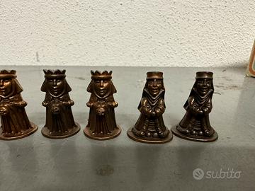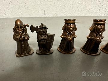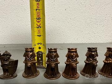 Piccolo lotto vintage di 9 personaggi medioevali in metallo, trovati come sorpresine degli ovetti kinder.