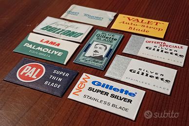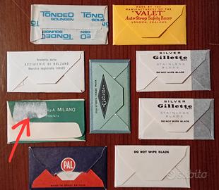 Lotto di 9 vecchie lamette da barba di varie marche , in buone e ottime condizioni, da segnalare solo un difetto sul retro della "PALMOLIVE" (vedi foto).