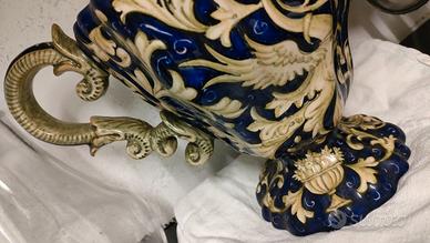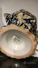 Caraffa/vaso in ceramica, A.M.A. Pesaro (Italy A.M.A Artigiani Maiolicari Associati), ceramica decorata a mano, pezzo unico per collezionisti. Ottime condizioni. Dimensioni: altezza 19 cm; larghezza 20 cm; base: 15 cm.