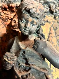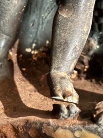 , patina marrone scuro/nero con ossidazione naturale, macchie verdastre/ verdigris e dorate sugli alti - autentica usura del tempo, non vernice recente).