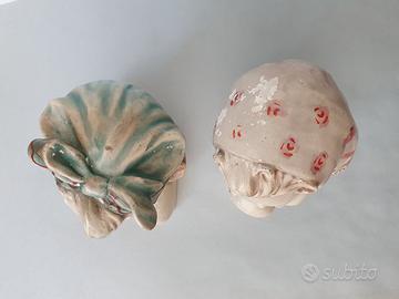 Disponibili queste due ceramiche firmate da Amilcare Santini (1910 – 1975) raffiguranti i volti di due giovinette sorridenti.