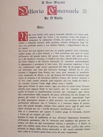 Negli anni fatidici delle guerre nazionali allorché con l'opera ardimentose degli avi vostri e col concorso eroico del popolo si preparava la redenzione d'Italia, da questa terra alpestre, vestibolo il baluardo estremo della penisola, vennero all'Augusta casa Vostra, con profondo amore con infinita fiducia, i rappresentanti dei padri nostri