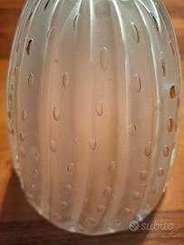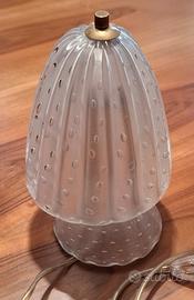 Coppia di rare abat-jour vintage realizzate dalla vetreria Barovier & Toso di Murano negli anni '40, in stile Art Déco, su disegno di Ercole Barovier; sono state create in vetro trasparente, soffiato e lavorato a mano dai maestri vetrai muranesi, con la tecnica di lavorazione "Bullicante", con bolle d'aria all'interno distribuite a cascata, su struttura portante in ottone.