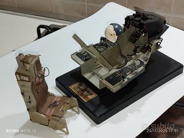 Vendo abitacolo aereo caccia F16 in scala 1:12 da scatola ESCI con seggiolino eiettabile estraibile,realizzato da me seguendo fedelmente lo schema e la colorazione di quello vero.Il prezzo non è trattabile.