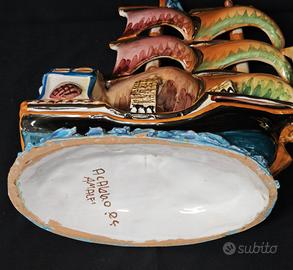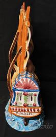 Scultura decorativa in ceramica raffigurante un veliero, realizzata e dipinta a mano dalla manifattura ACABBO Amalfi