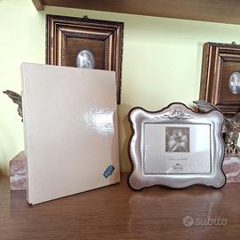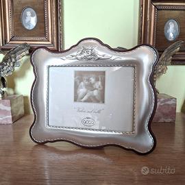 Bellissima ed elegante Cornice Portafoto orizzontale satinata degli anni 2000 in Argento 925 massiccio con bellissima lavorazione in rilievo che rappresenta una cornucopia di uva e grano.