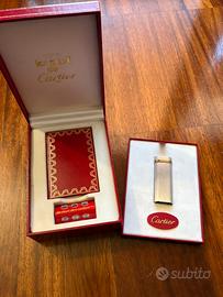 Vendo splendido set originale Cartier – linea Les Must de Cartier, elegante e raffinato, ideale per collezionisti o come regalo di prestigio. 📦 Il set comprende: •Accendino Cartier originale (finitura argentata con dettagli oro) •2 bombolette ricarica gas originali Cartier •Pietrine di ricambio (sigillate) •Scatola originale Cartier •Porta accessori originale ✨ Condizioni: •Mai utilizzato •Pari al nuovo •Sempre conservato nella sua confezione originale •Set completo, difficile da trovare in queste condizioni 💎 Oggetto di lusso vintage, sempre più raro soprattutto completo e mai usato. 🎁 Perfetto come idea regalo elegante o per appassionati del marchio Cartier. 📍 Consegna a mano o spedizione disponibile