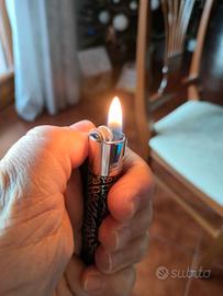 Clipper in metallo a pietrina a tema foglia di marijuana. colore nero e silver,con custodia in metallo e certificato di garanzia. nuovo.