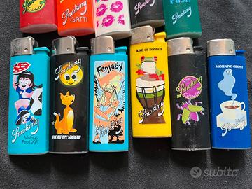 Accendini da collezione Smoking. Il pacchetto comprende 21 accendini. Sono tutti non funzionanti. Altezza singolo accendino: 8 centimetri