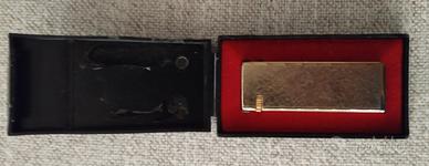 Elegante accendino vintage giapponese della marca Corona, mai usato e conservato perfettamente nella sua scatola originale con interno in velluto rosso.
