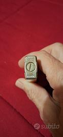 Elegante accendino vintage con finitura rigata e dettagli dorati. - Design classico e raffinato. - Materiale metallico resistente.
