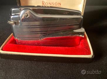 La scatola riporta il testo dell'epoca relativo al Royal Warrant ("By Appointment to H.R.H. The Duke of Edinburgh"), a indicare lo status storico di fornitore di Ronson.