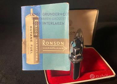 Incluso c'è il libretto originale Ronson Varaflame timbrato da un distributore europeo (Ernst Grunder & Co., Interlaken), che conferma la circolazione al dettaglio continentale.