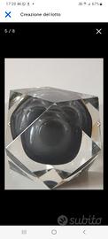 Accendino da tavolo in vetro di Murano a forma di prisma colore sfumato e cangiante sui toni del bianco/grigio/nero, largo cm 10, profondo cm11, alto cm 11, del peso di gr. 787 del marchio Prince, autentico anni 60, in ottimo stato, funzionante