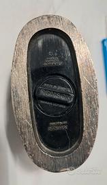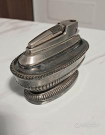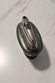 L'accendino in metallo argentato è usato e richiede di pulizia e manutenzione per essere funzionante.