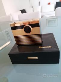 Accendino da tavolo Rowenta electronic da collezione. Completo di scatola originale e libretto di istruzioni, acquistato nel 1996 è presente la marca da bollo da Lire 300 obbligatoria per gli Apparecchi d'accensione. L'accendino si accende con il pulsante nero anteriore e si spegne appoggiandolo sul tavolo.