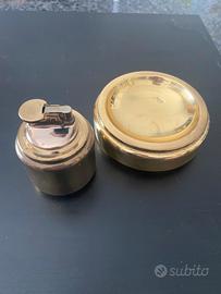 Set da fumo Vintage in ottone made in Italy Florence, lavorato a mano. Il set è formato da posacenere di 12cm di diamentro e da accendino da tavolo il quale va sostituita la pietra o ricaricato (in quanto provando ad accendere fa solo la scintilla).