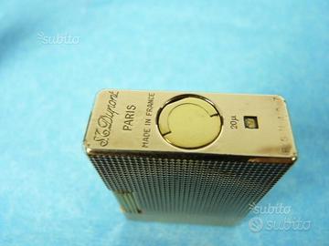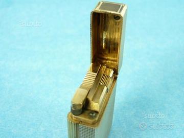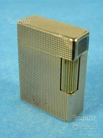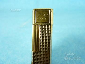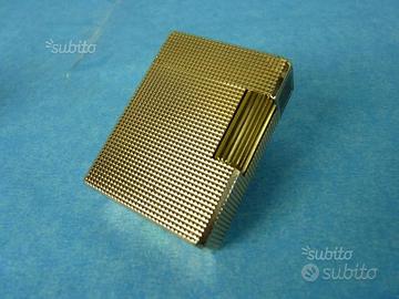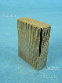 Originale accendino a gas placcato in oro 18 carati, a forma di parallelepipedo. Piani zigrinati (Linea 1 small punta di diamante).