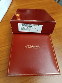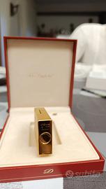 Accendino S.T. Dupont Ligne 1 con libee orizxontali, finitura placcata oro (Plaquè Or), Grand Modele. Nuovo, mai usato. Scatota originale presente. Garanzia originale timbrata a Milano nel 1999. Numero di serie inciso sul fondo. Meccanismo perfetto. Nessun segno d’usura.