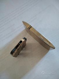 accendino alimentato a gas, molto particolare grazie alla sua forma elegante. DIMENSIONI: L. : 3 cm. H. : 6 cm. spesso. : 6 mm.