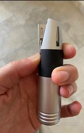 Prodotto in Giappone da Porsche primi anni 2000, progettato da architetto Marwin per Porsche, ricorda una parte del motore della Porsche 3GD. In alluminio, color argento, fiamma regolabile e ricaricabile. Fiamma anti vento. Non più in produzione. Cm 10.50 lunghezza