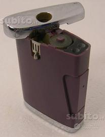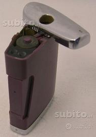 Corpo in plastica color prugna opaco, parte superiore (ruota di 45°) e ghiera/cornice sul fondo in metallo cromato; fondello nero in plastica.
