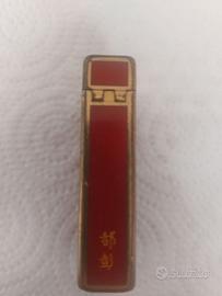 accendino S.T. Dupont Ligne 1 in Lacca di Cina rossa e finiture placcate oro. Ossidato e un po rovinato il rosso