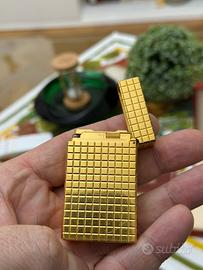 Splendido accendino S.T. Dupont originale, placcato in oro, con la prestigiosa ed elegante lavorazione "Clous de Paris" (motivo a piccoli scacchi). Un pezzo di altissima classe, perfetto per collezionisti esigenti.