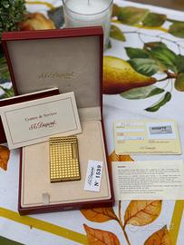 Splendido accendino S.T. Dupont originale, placcato in oro, con la prestigiosa ed elegante lavorazione "Clous de Paris" (motivo a piccoli scacchi). Un pezzo di altissima classe, perfetto per collezionisti esigenti.